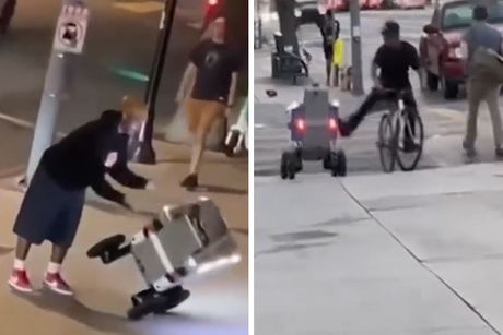 Skinuo nogu sa pedale da bi šutnuo robota, drugi ga samo oborio na asfalt: Tehnologija meta napada na ulici
